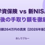 なお「死亡保障が不安だから学資保険」と思っている方へ。同じ保障を定期死亡保険(掛け捨て)で別途用意すれば、保障コストは格段に安くなります。月3,000〜5,000円の掛け捨て保険+新NISAの組み合わせが、学資保険単体より安くて手取りが増えます。詳しくは保険見直しガイドを参考にしてください。